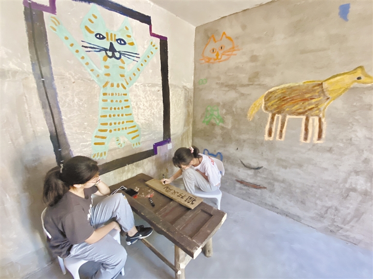 立足为“留守”猫提供生息之地,借助歪头山优美自然风光,围绕建设文旅新村——“猫村”主题,龙泉关镇联合阜平文创工作者周合伟,对东坪村实施艺术包装,进行加固修整,利用空房收养“留守”猫。同时发动当地有着绘画禀赋的聋哑村民“狗小”,在村内的房门、墙壁等处绘制“猫”主题画500余幅。
