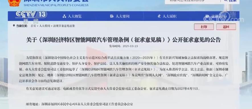 今年,《深圳经济特区智能网联汽车管理条例(征求意见稿)》公开征求意见,无人驾驶汽车有望在深圳率先合法上路。