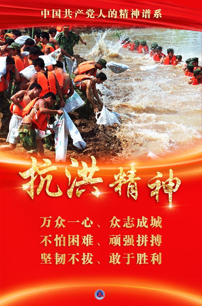 在中国共产党坚强领导下,全国军民以气吞山河的英雄气概,降服了洪魔,赢得了抗洪斗争的伟大胜利,形成“万众一心、众志成城,不怕困难、顽强拼搏,坚韧不拔、敢于胜利”的伟大抗洪精神。