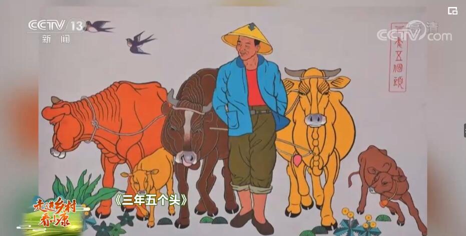 20世纪八十年代,李俊敏创作的《三年五个头》,表述的是牛的自然繁衍规律,反映的却是生产关系变革带来的繁荣兴旺的养殖业;21世纪初创作的《黄牛息耕图》,用黄牛退出农耕来反映农业现代化的进程,使原本画牛的作品有了更深层次的社会意义和与时俱进的时代感。2003年,为了让更多的人参与到农民画创作中,当地还开起了免费培训班,做起了农民画产业。