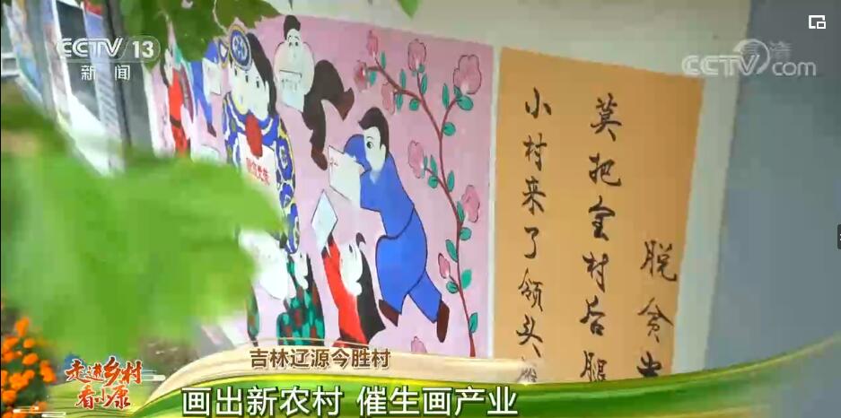 总台记者 文彬:我现在位于吉林省辽源市东丰县今胜村,这里的很多农民都会画画。比如说我面前院墙上的这幅画,就是当地农民创作的一幅秋收的场景,旁边还配有打油诗,诗名是《扶贫项目苹果丰收》——惠民政策顶呱呱,精准扶贫到俺家,山坡栽上摇钱树,穷根拔掉有钱花。在今胜村,像这样的墙画共有188块,总长度1048米。“拿起锄头种田,放下锄头画画”已经成为这里很多农民的习惯,墙上的一幅幅画作都是农民亲手绘制的,讲述的就是这个小山村这些年发生在农民身边的故事,农民们用画笔栩栩如生地把这些真实的故事画在了墙上,呈现了出来。
