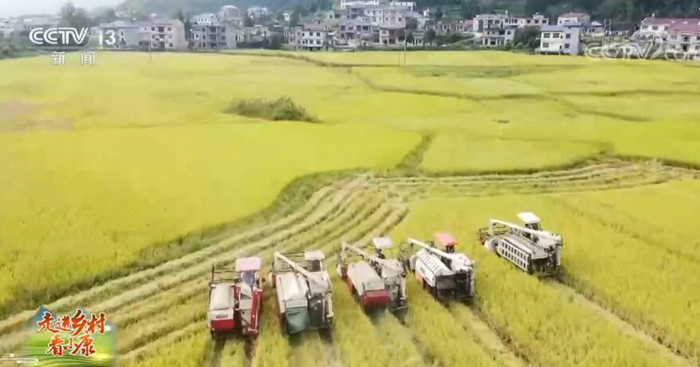 央视网消息:金秋时节,稻花飘香。湖南益阳安化县的木溪村已是金黄一片,村子里400多亩富硒大米进入收割季。