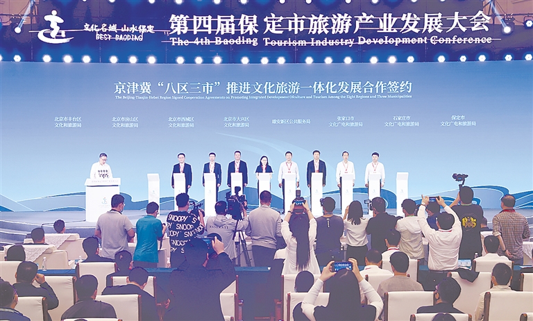 9月25日,第四届保定市旅游产业发展大会开幕。这是京津冀“八区三市”推进文化旅游一体化发展合作协议签约现场。 本报记者 曹云鹏 王田明 摄