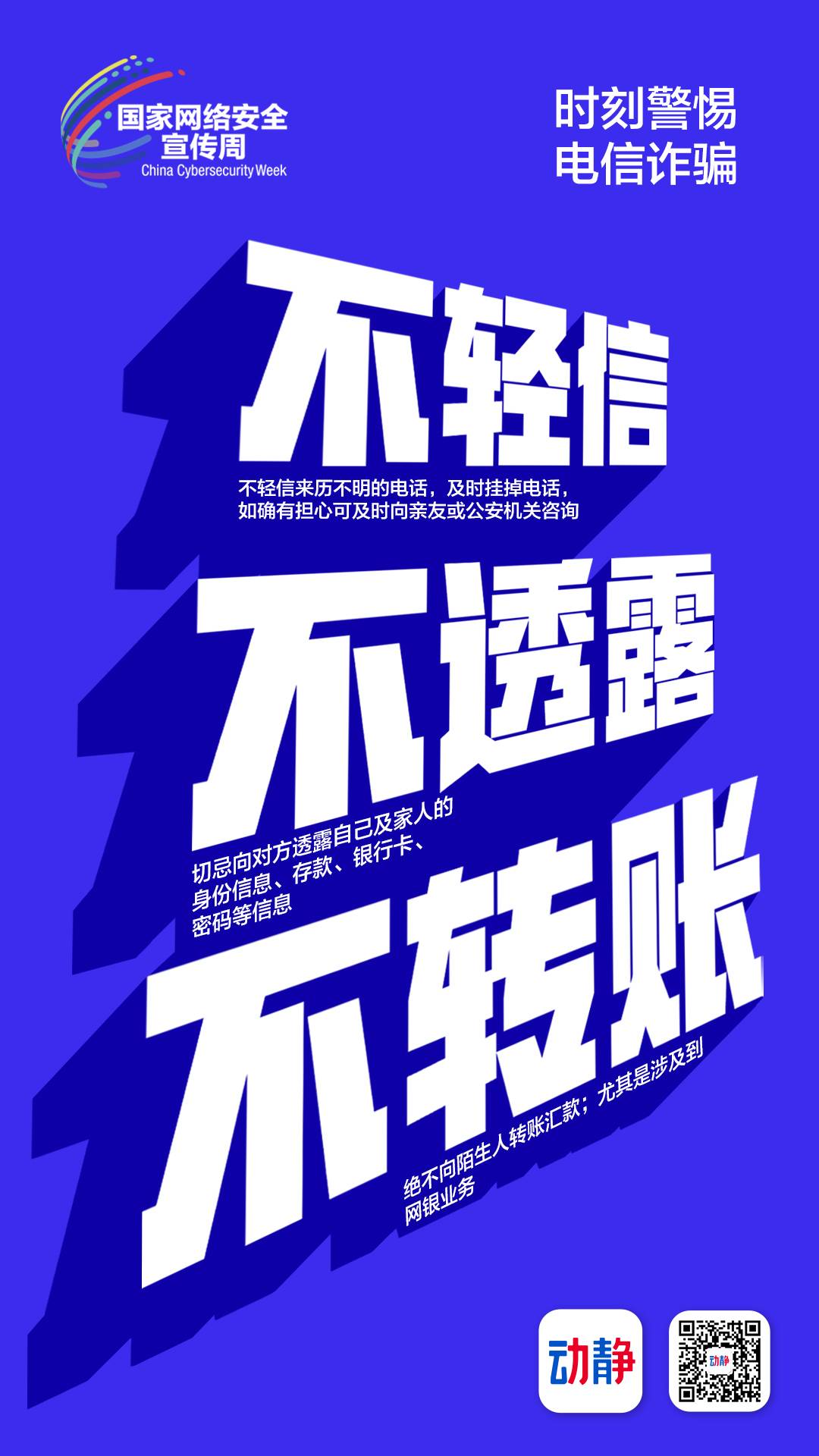 随着互联网的普及和发展,传统犯罪活动加速向以电信、互联网等为媒介的非接触性犯罪转移,网络新型犯罪日益增多。为切实保障网络安全及人民群众财产安全,电信部门提醒广大市民,不要轻信来历不明的电话,及时挂掉电话,如有担心可及时向亲友或公安机关咨询;切忌向对方透露自己及家人的身份信息、存款、银行卡、密码等信息;不向陌生人转账、汇款,尤其涉及网银业务时。