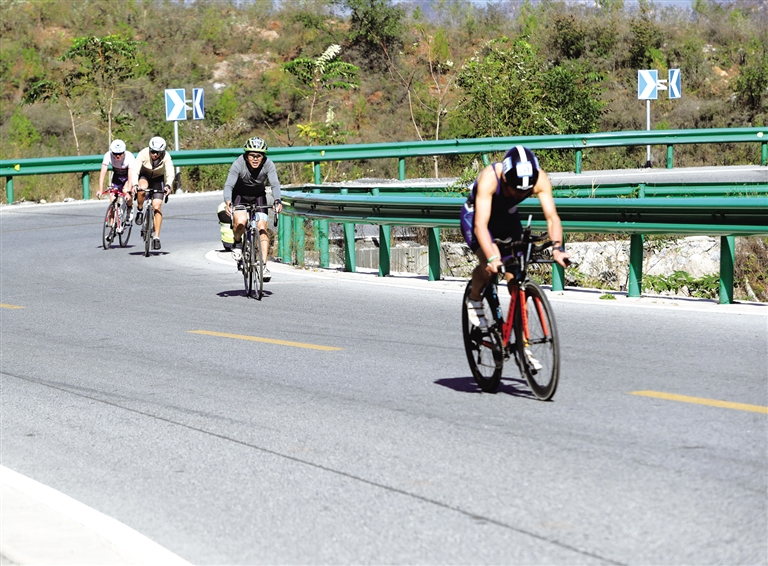 上午9时20分,随着发令枪声,选手们开始在波光潋滟的易水湖面劈波斩浪,在龙西公路的秀美风光中进行自行车竞速追逐,在五彩斑斓的狼牙山田园花海中奔跑争先。据了解,京津冀铁人三项大赛已被列入河北省重点扶持的精品赛事,成为全国铁人三项运动爱好者展示自我的重要平台。比赛主要路途的易县龙西旅游公路成功入选全国十佳体育旅游精品线路。