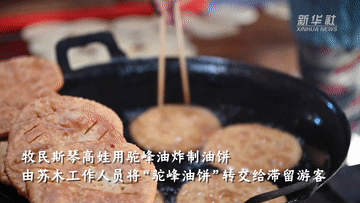 牧民斯琴高娃之前在景区内经营小吃摊位,景区封闭后,她将大油锅带回家,开始为滞留游客炸油饼。考虑到滞留游客中老年人较多,斯琴高娃用酥油和面,使用驼峰油炸制油饼,这样炸出的油饼更加松软。
