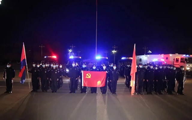 10月26日,按照公安厅统一部署,鄂尔多斯市公安局第一时间组织100 名警力赶赴阿拉善额济纳旗参加防疫情防控工作。100 民警组成的支援队伍,足额配备各类警用装备、医疗物资和疫情防护装备,确保全体参战民警无后顾之忧,全身心投入支援阿拉善盟疫情防控工作。