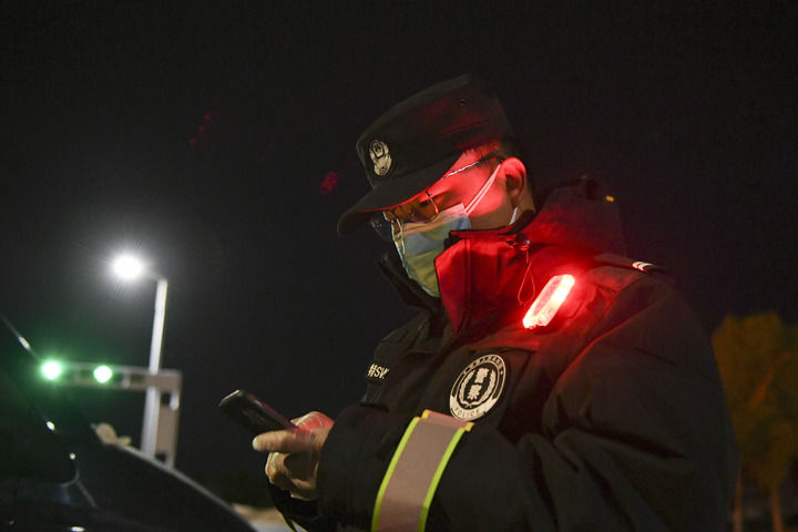“我每天在这个出入城卡口执勤,一天四班倒,不论白天黑夜,都有运送生活物资、医疗设备的车进城。”刘述鹏说,“这些车来自很多地方,感谢大家共同支援额济纳旗抗疫。”