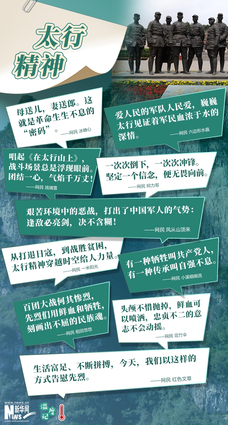 巍巍太行山,滔滔漳河水。今天,沿着当年的抗战足迹望去,一度“山穷水远路闭塞”的革命老区已焕发新颜,一幅“山里有美景,山上有产业,山下有新居”的美好画卷正徐徐展开。“从打退日寇,到战胜贫困,太行精神穿越时空给人力量”,正如网民所说,虽然抗日烽火早已熄灭,但伟大精神永不褪色,将永远激励中国人民克服艰难险阻、阔步向前。(文字:马若虎 海报设计:王晔)