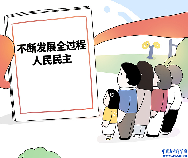 漫画:不断发展全过程人民民主。图片来源:视觉中国