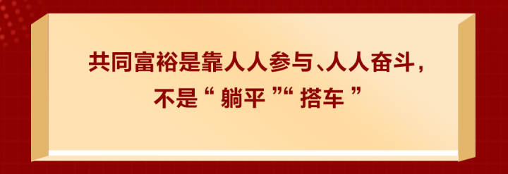 “躺平”不可能坐享其成,“内卷”不可能创造幸福。共同富裕是逆水行舟,不是顺水漂流,大家齐心协力地往前划,才能到达共同富裕的彼岸。14亿多人,每个人的智慧和力量都发挥出来,财富累积起来将是惊人的;如果仅凭部分人去创造,幸福生活谁也给不了。唯有奋斗,别无他路。
