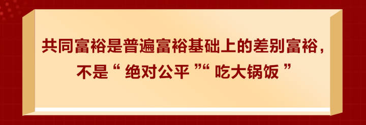 推动共同富裕也是这个道理,14亿人一起“吃大锅饭”,那将是死水一潭。促进共同富裕,不是简单的“削峰填谷”,是普遍富裕基础上的差别富裕。要正确处理效率和公平的关系,在做大蛋糕的基础上分好蛋糕,构建初次分配、再分配、三次分配协调配套的基础性制度安排,扩大中等收入群体比重,增加低收入群体收入,合理调节高收入,取缔非法收入,形成中间大、两头小的橄榄型分配结构,使全体人民朝着共同富裕目标扎实迈进。