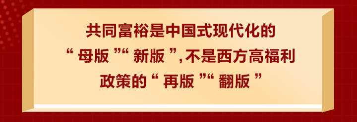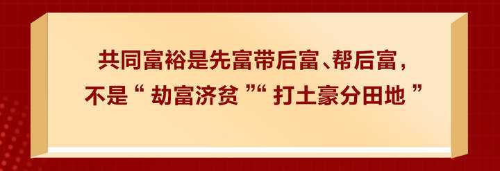 共同富裕是授人以渔,并非授人以鱼。财富是靠劳动创造出来的。先富带后富,带的是走上劳动致富的康庄大道;先富帮后富,帮的是提高劳动致富的能力。正如有的人说的,那种希望从富人的蛋糕上切一块让自己富起来的想法,就像把高个子的腿截下来一段接到矮个子的腿上一样,肯定是行不通的。