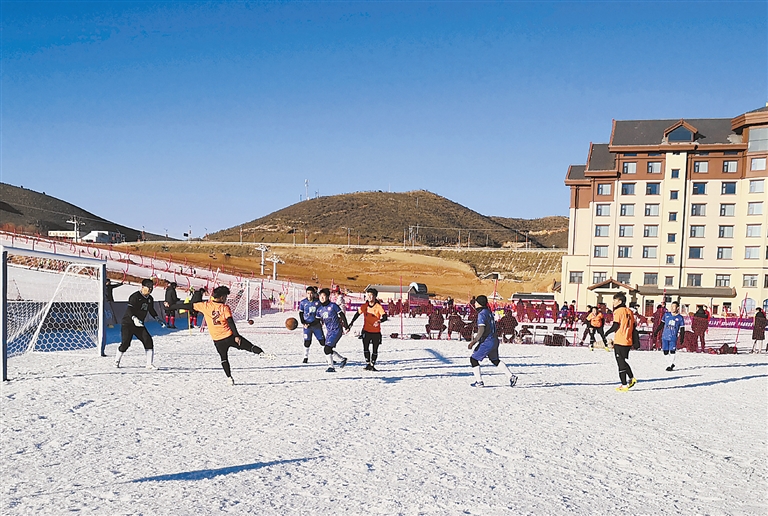 在涞源县七山滑雪场开赛的河北省第三届冰雪运动会雪地足球比赛(社会组),保定市代表队在小组赛中三战三胜,获得了前八名的好成绩。比赛过程中运动员们身姿矫健,整个比赛过程精彩纷呈。