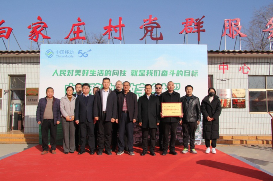 (保定市农业农村局、乡村振兴局、顺平县委县政府和保定移动领导为白家庄村“数字乡村”示范村授牌)