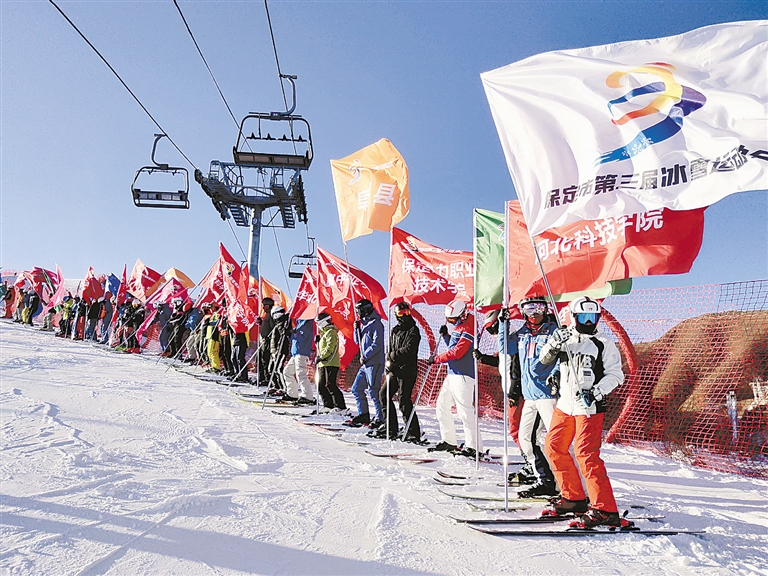 本报讯(记者陈曦 通讯员 田晨光)12月26日中午,涞源县七山滑雪度假村,来自保定市远山滑雪俱乐部的65名成员手持各色彩旗从山顶蛇形滑下,顺利完成保定市第三届冰雪运动会开幕式彩旗方阵的彩排演练。彩旗方阵中年龄最大的62岁,最小的只有13岁。