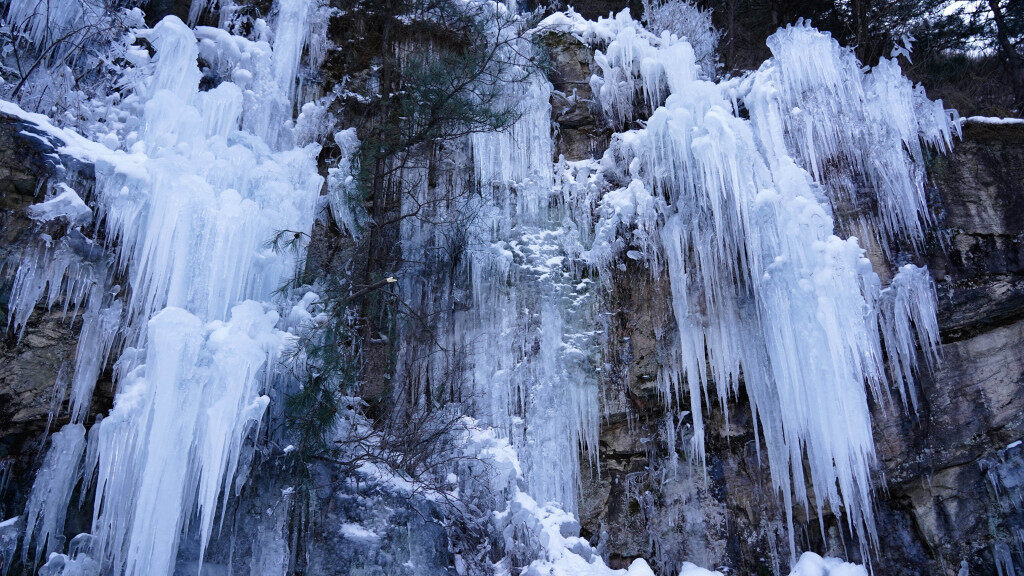 冬日暖阳,空气清新,位于保定市唐县倒马关乡南上沟村的秀水峪景区也处于冬季最美时候。节前的降雪与低温,让夏季流淌的溪流和瀑布,成为晶莹剔透、洁白壮丽的冰瀑、冰挂,蔚为壮观。放眼望去,景区内清幽绝俗,层层山峦,碧空如洗,阳光照射下,反射出耀眼斑驳的光影,伴着苍松翠柏,银色冰雪,景色美不胜收。侧耳去听,鸟鸣啾啾,还会听到冰面之下山泉水潺潺流动,静谧美好。沿着步游道拾级而上,就象走在画廊里欣赏一幅幅精美的山水画一样,移步易景。