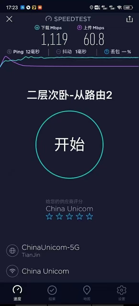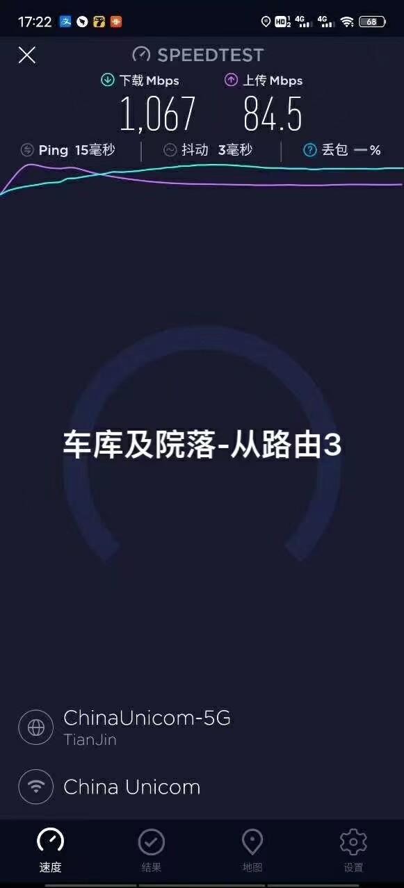 在与用户充分沟通之后,涿州联通的智慧家庭工程师们决定充分利用电线暗管、空调室外机孔和别墅房檐等可以利用的现有孔洞,既不额外打眼,也不会破坏装修风格,且室内全部使用隐形光纤布线,做到美观大方。考虑到这种设计的施工时长相对较久,王建勇和徐思琪耐心地向客户做了解释说明,取得了理解配合。“由于现有孔洞狭窄,作业不便,穿线非常困难,只能一点一点的慢慢攻坚。”精工出细活,经过3个多小时的“攻坚”,终于完成了布线。“我们又考虑到用户对网络的需求点较分散,又在房屋不同位置装置了一主三从共四个千兆光猫,使别墅整体全屋覆盖、无缝连接,测速均达到1000M以上。”