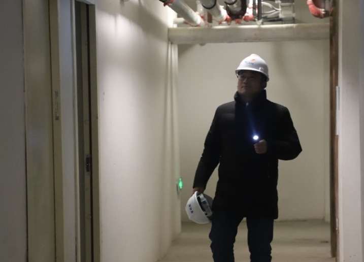 由于地下室及车库面积较大,冬季气温低,且没有暖气,工人们即使穿着大厚棉袄也会时不时的冻手。穿着黑色羽绒服的王亚杰时不时也冻得打哆嗦,由于长期拿着手电筒,没有戴手套,他的手冻的通红,但相比之前盯外立面施工时,被风吹的头疼,王亚杰觉得这些都受得住。
