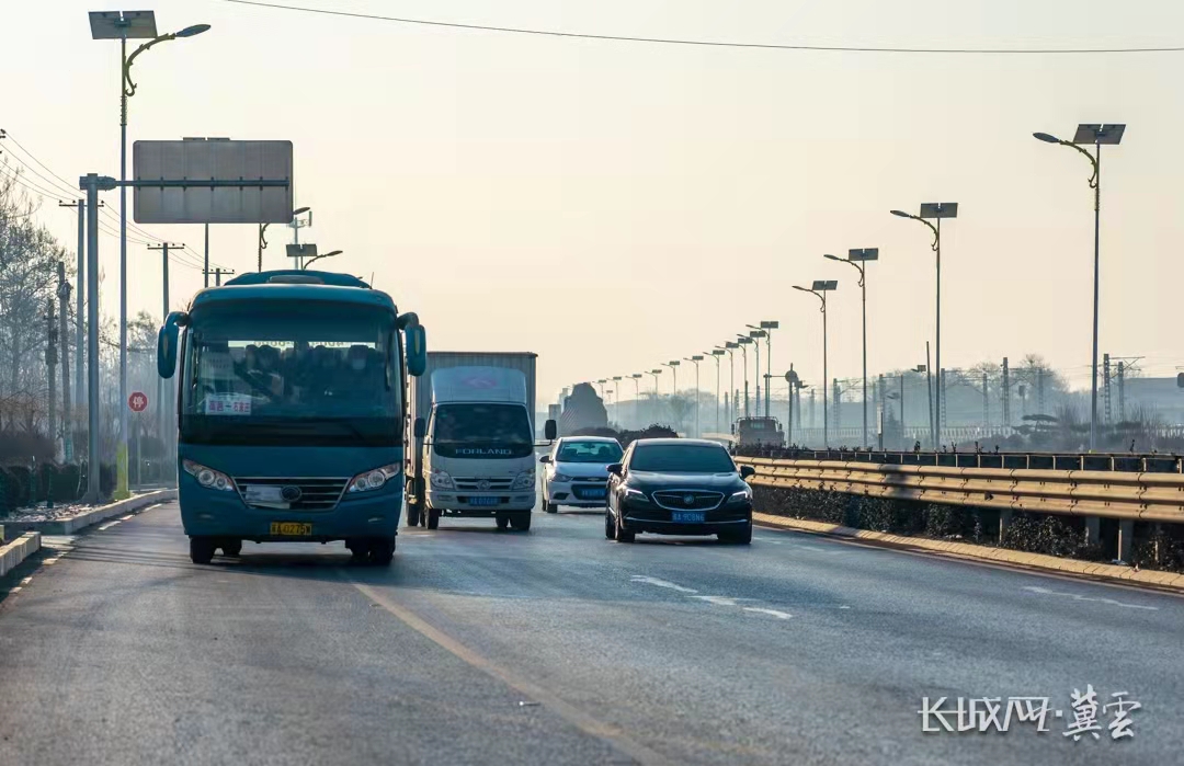 春运期间,交警要对“两客一危”、7座以上面包车等重点车辆检查。记者跟随李赫站在路旁,视线盯着由南向北驶来的车辆,一旦受检车辆驶近,李赫就挥手示意司机停车。