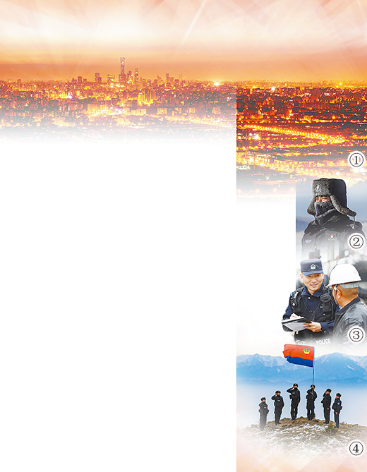图④:新疆博尔塔拉蒙古自治州边境管理支队民警在巡逻区向警旗敬礼。