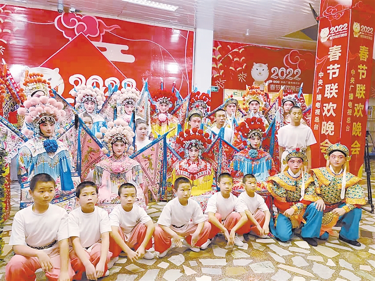 2021年岁末,保定艺术学校接到了中央广播电视总台2022年春节联欢晚会邀请函。从接到任务的那一刻起,学生们既兴奋又感到荣耀。2022年1月9日,由保定艺术学校校长齐文英带队,一行31人来到北京央视总台开始了紧张的集中排练。学校参加演出的学生男生16人、女生10人,最小的学生8岁,最大的学生18岁,分饰女靠、男靠、兵将等角色。