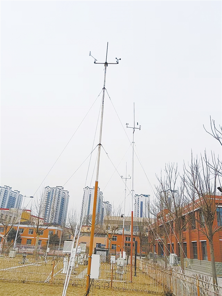 在位于市气象局的观测场内,记者看到几台气象观测设备正在有条不紊地工作着,“那个高高的、像风车一样转动的是什么?”