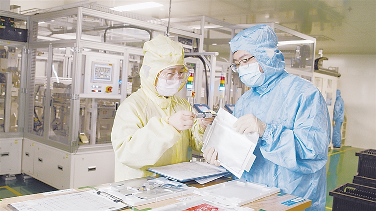 风帆公司车间员工在生产线上检测。 邸双喜 摄