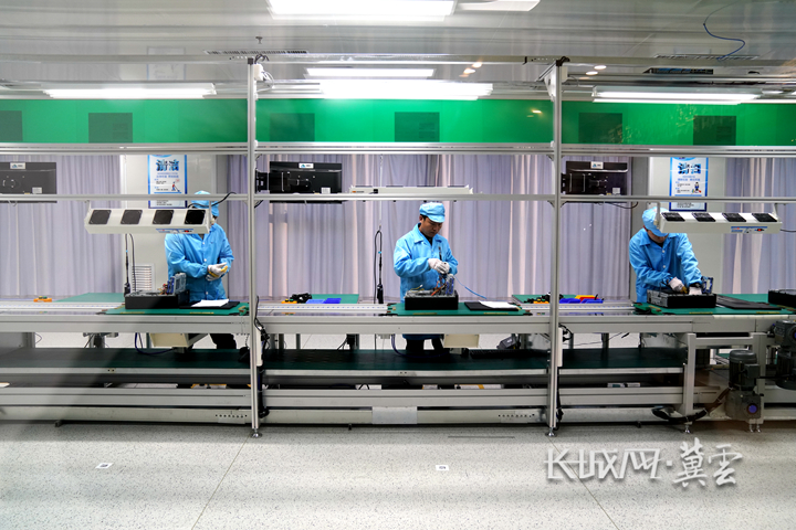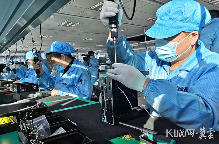 超级视线主控机组装线上的工作人员。长城网·冀云客户端记者 赵晓慧 摄