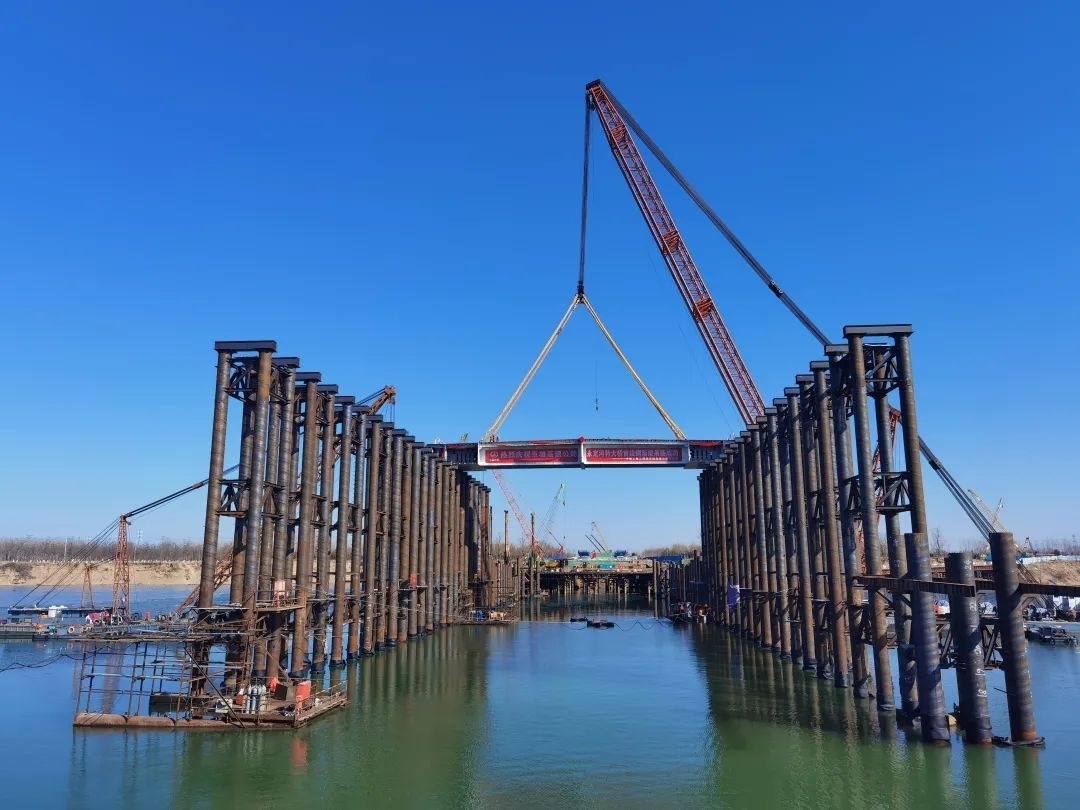中铁上海工程局项目生产副经理侯仁江:春节过后主要进行的工序是大桥主墩两个承台的深基坑围堰施工,10月份要保证主体工程完工。这个地方夏季汛期正常水深达到10米,还有18米的卵石层,施工难度很大。