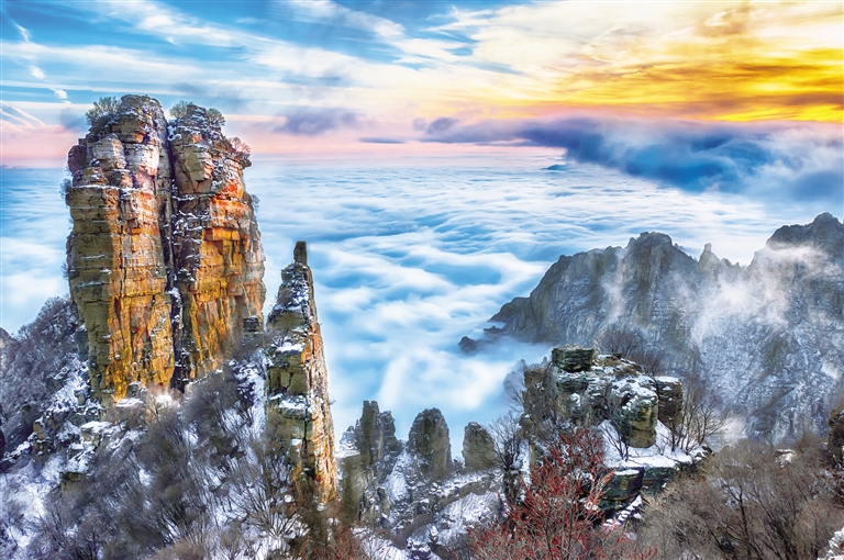 这个时节的白石山,冷冽而静谧,可云端赏“海”,亦可山间踏青。有着泰山之雄,华山之险,黄山之奇,以景区资源为背景,险峰、奇景、云海、佛光……随手一拍便收获一张清新自然风的照片,媲美明信片。