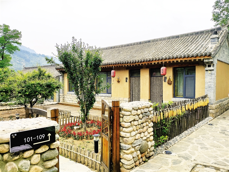 青水瓦、木挑梁、小皮檐、花格窗……一个个典型的太行民居依山而建,清晨推窗便可“看得见山,望得见水,记得住乡愁”。这就是骆驼湾小院,一座位于太行山深处的旅游民宿。