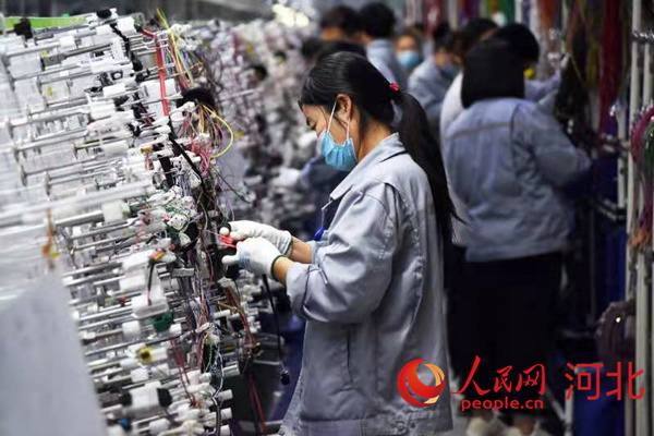 廊坊莱尼线束系统有限公司生产车间,工作人员在工作中。 王洋洋摄