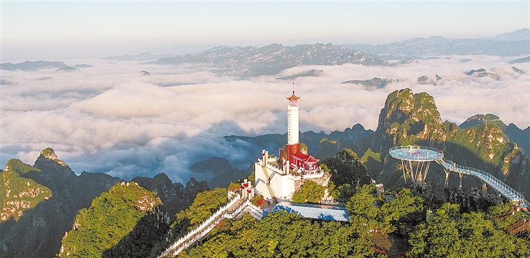 老子峰景区3100米临水观景栈道,蜿蜒曲折,宛若“蛟龙”,一步一景,拾级而上湖光山色尽收眼底,是易水湖度假区的精华所在。山石林立、造型奇特、雄奇险峻——大道之源、天地根、无为屏、天门云梯、观水、鹤鸣桥等12处风景贯穿整个游览路线。