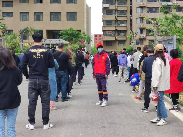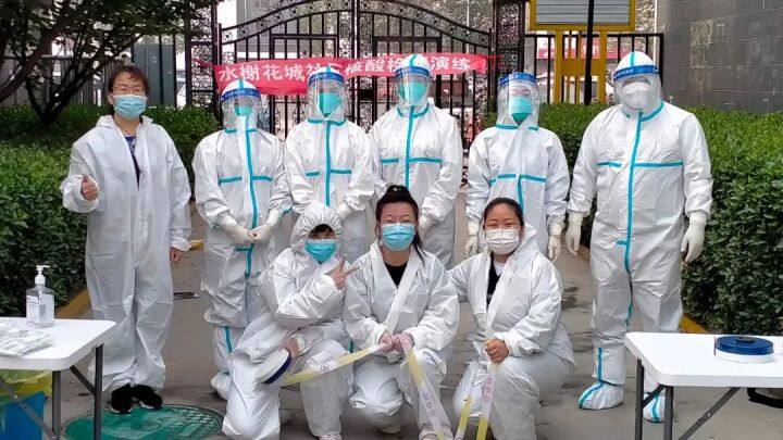 测试中心志愿者刘俊茹(右二)在核酸检测现场