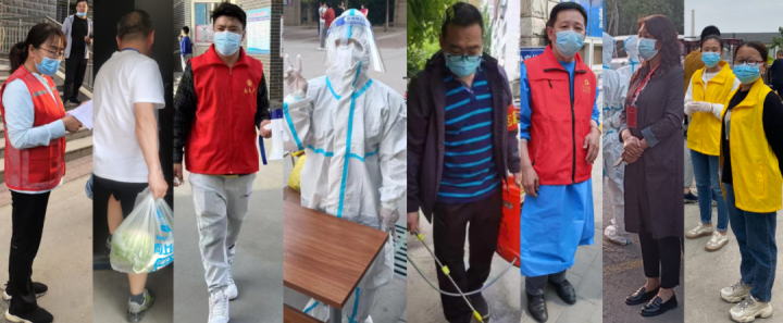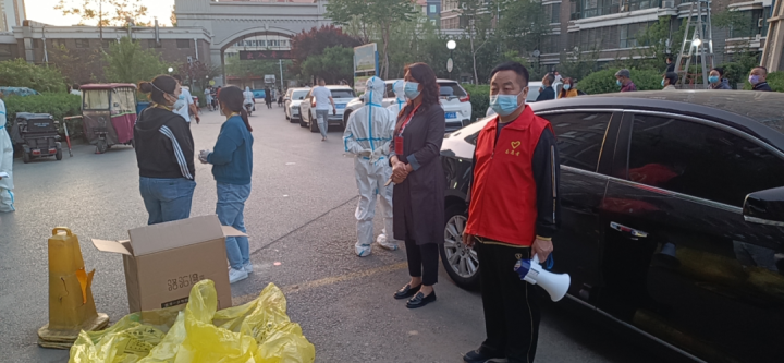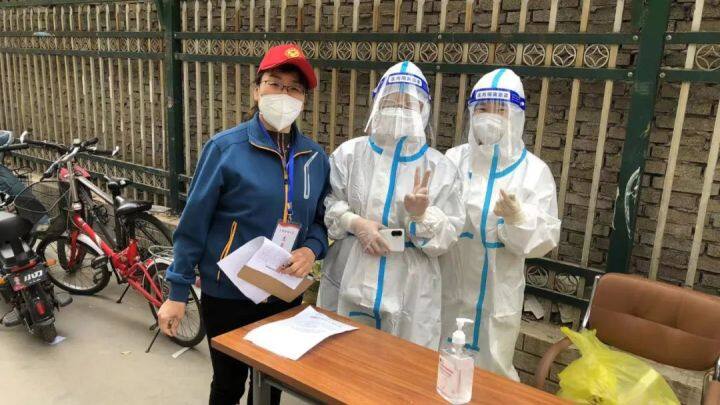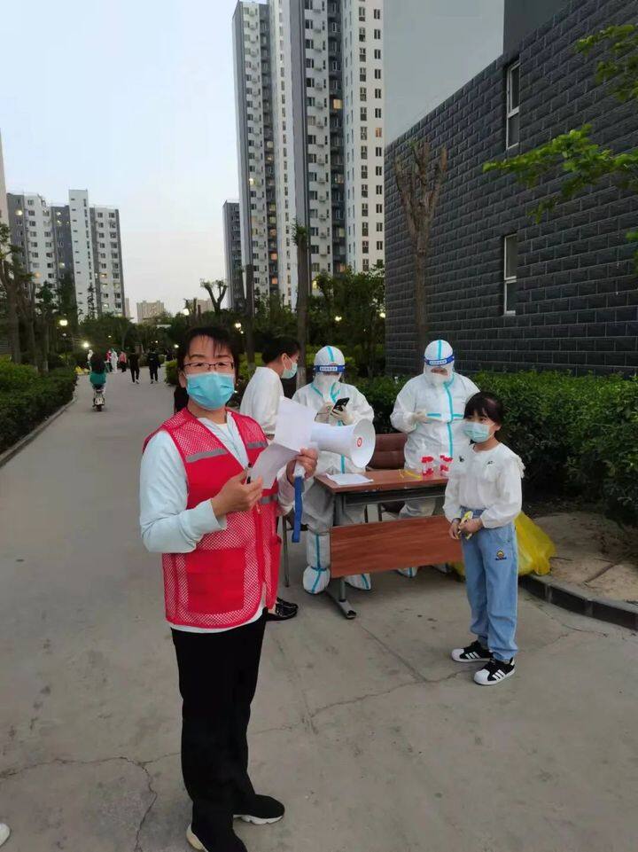 测试中心志愿者程文翠、央珠、乔淞汾在社区抗疫一线开展志愿服务