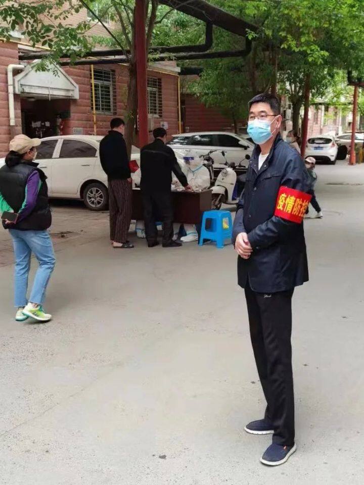 测试中心志愿者李永立、张硕、康志娟在共驻共建绿都皇城社区协助抗击疫情