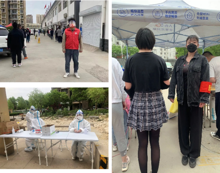 市文化市场综合行政执法局张永进、韩长勇、王建彬、张海峰、李占平、王洪义、张建文等参加社区核酸检测志愿服务