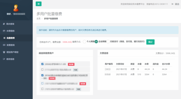 自有平台保定供水网(www.bdwater.com)不仅能随时关注供用水动态,更是集用水咨询、详单查询、水费交费为一体的综合窗口。尤其是针对企事业单位等对公用户的服务,更是提供了网上交费、电子发票开具与下载功能,发挥了省内同行业率先实现一站式服务的首家引领作用。