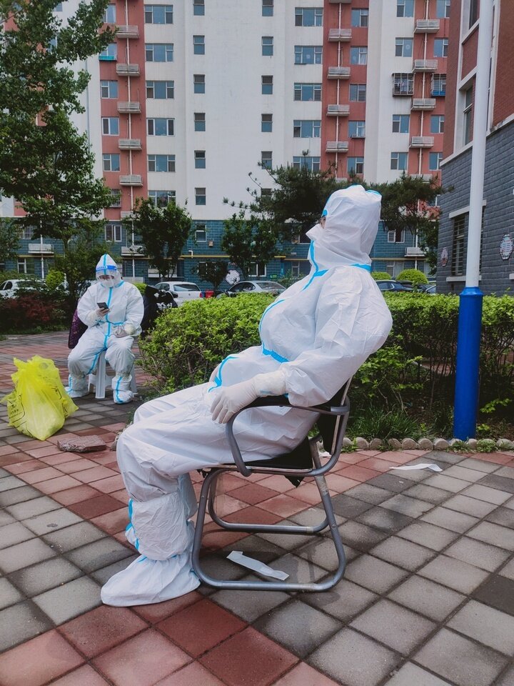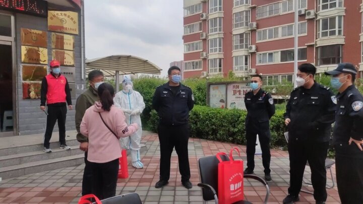 13时,现场医护人员和采集信息的志愿者都穿着防护服,虽然已过中午,这么长时间大家滴水未进,午饭也没吃,但没有一个人喊累,大家任劳任怨,坚守在核酸采样现场。社区和物业工作人员忙碌的身影。 王辛于 摄