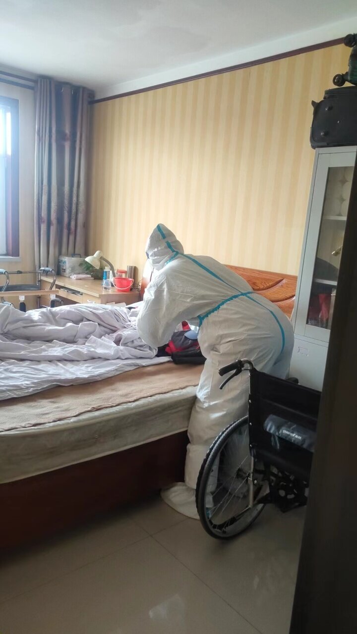 “从25日凌晨接到卫健委通知,我们那的所有医护人员就都分派到各个小区进行核酸采样工作了。我们三位从25日以来,每天都在这个小区进行核酸采样工作,今天是第四天。我们在这个小区的核酸采样工作进展很顺利,社区、物业、志愿者们组织有序,居民也非常配合。”负责该小区核酸采样工作的秀梅口腔主任郎国俊告诉记者。上门为行动不便的老人进行核酸采样。 王辛于 摄