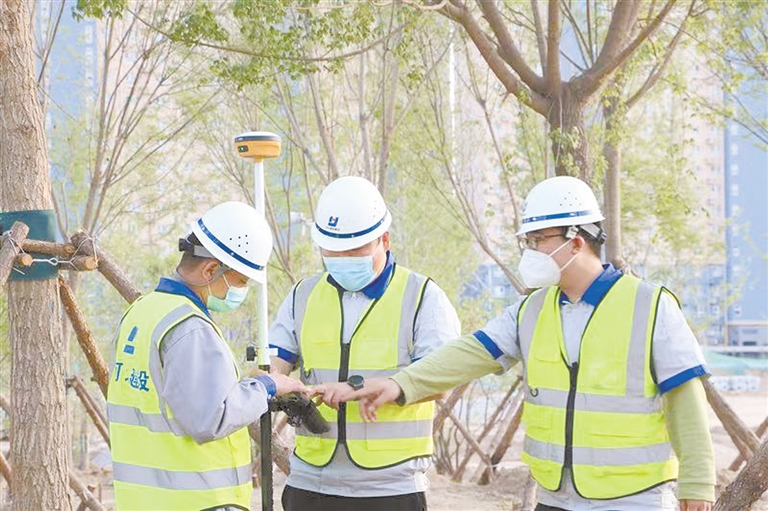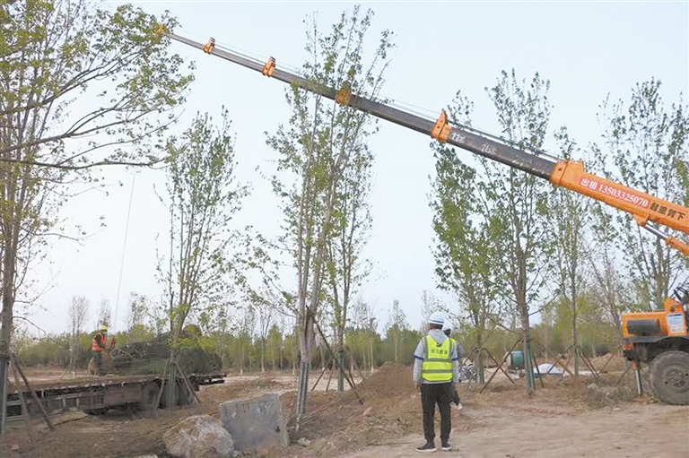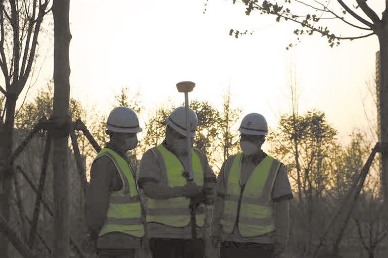 河北建设集团园林工程有限公司环城水系—黄花沟生态设施综合提升工程项目部建设者,为了抢抓种植黄金期,34名管理人员和150多名施工人员,为在“五一劳动节”到来之前完成种植15000株乔木的任务,多工种联动、各部门配合,昼夜奋战,做到防疫、建设两不误。