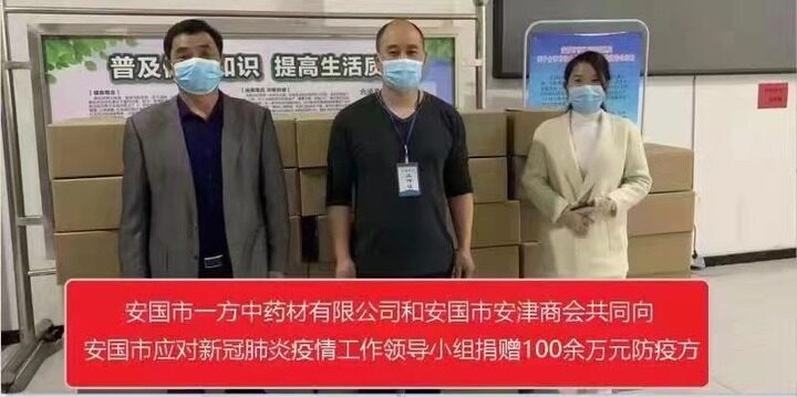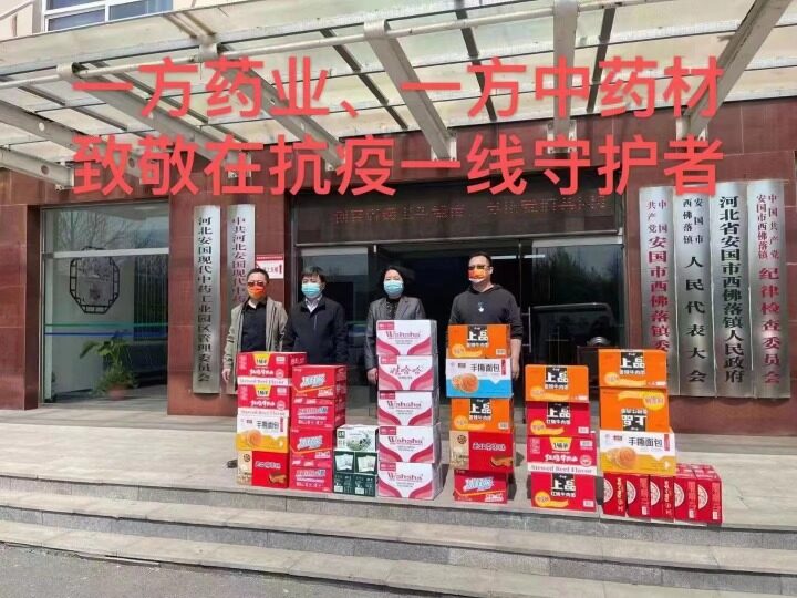响应保定市政协号召,4月26日,保定市政协常委、安国市一方中药材有限公司总裁张汉伟组织工作人员,把价值50万元的抗疫药品运送到保定市区,助力疫情防控工作。