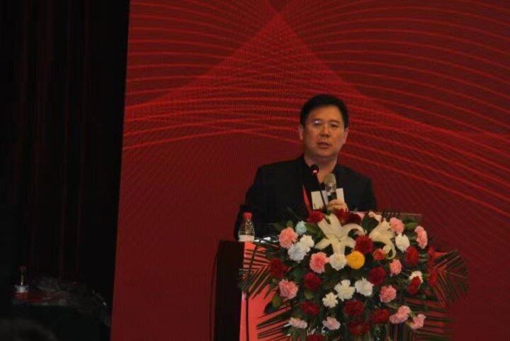 张汉伟在企业大会上发言。