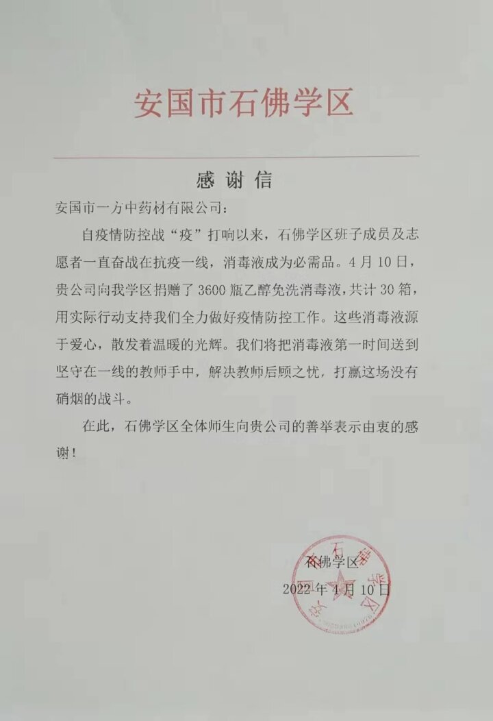 早在4月1日,安国市因突发新冠肺炎疫情实行封控管理,张汉伟就积极组织捐赠了抗疫药品价值1018875元,并向疫情较为严重的安国市石佛学区捐赠了30箱消毒液价值10080元,向安国市现代中药工业园区政府捐赠30箱面包、方便面、水等食品价值3000元。企业员工还作为志愿者参与到卡点值勤抗击疫情工作一线。