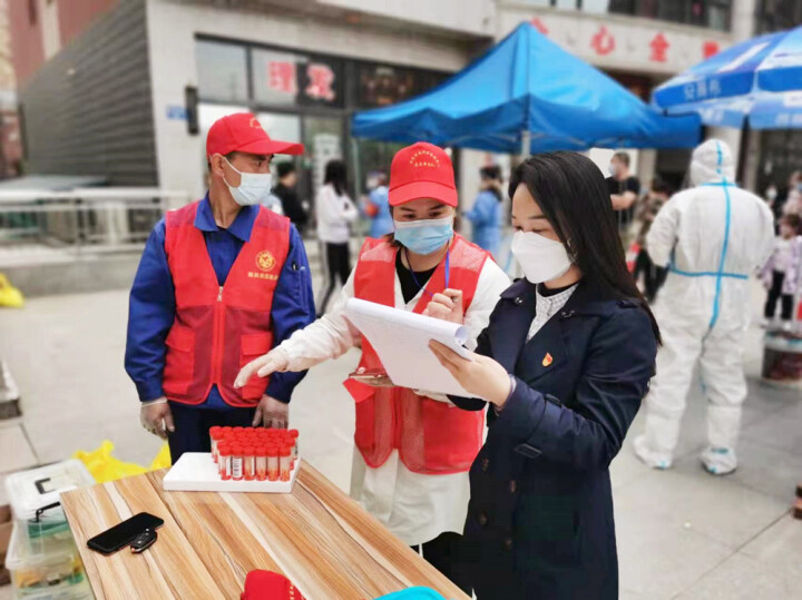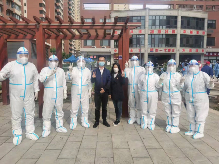 4月27日因特殊天气,考虑到医护人员不被淋湿,大家都不顾饥饿和疲惫决定重新布置现场,确保全员核酸采样工作顺利进行。物业经理高鹏带领团队积极配合社区各项工作,亲自盯着核酸现场布置、区域消杀、现场秩序维护。网格员张硕接到社区书记电话,第一时间就投入到工作中来。党员志愿者刘迪作为一名共产党员,穿戴好防护服的他,静静的守候在医护人员身后,等待送检。