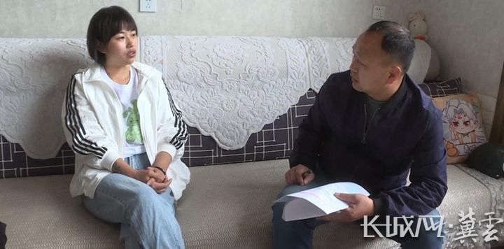 邢台市临城县沟里韩村网格员到村民张娜(左)家中了解近况。长城网·冀云客户端记者 贾宏博 摄