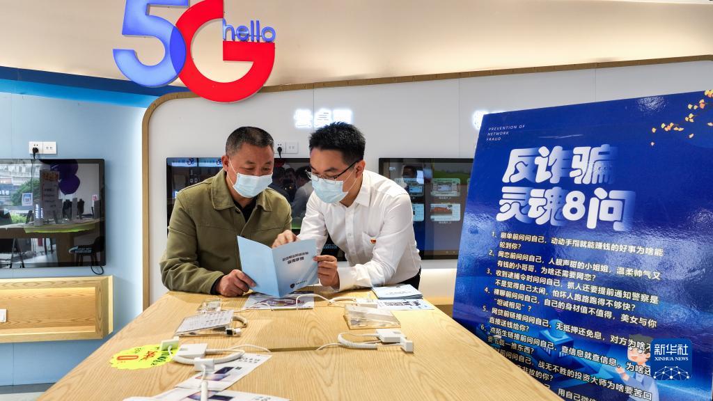 5月16日,在湖南省常宁市,中国电信股份有限公司常宁分公司的工作人员在为老年顾客讲解防范电信网络诈骗知识。