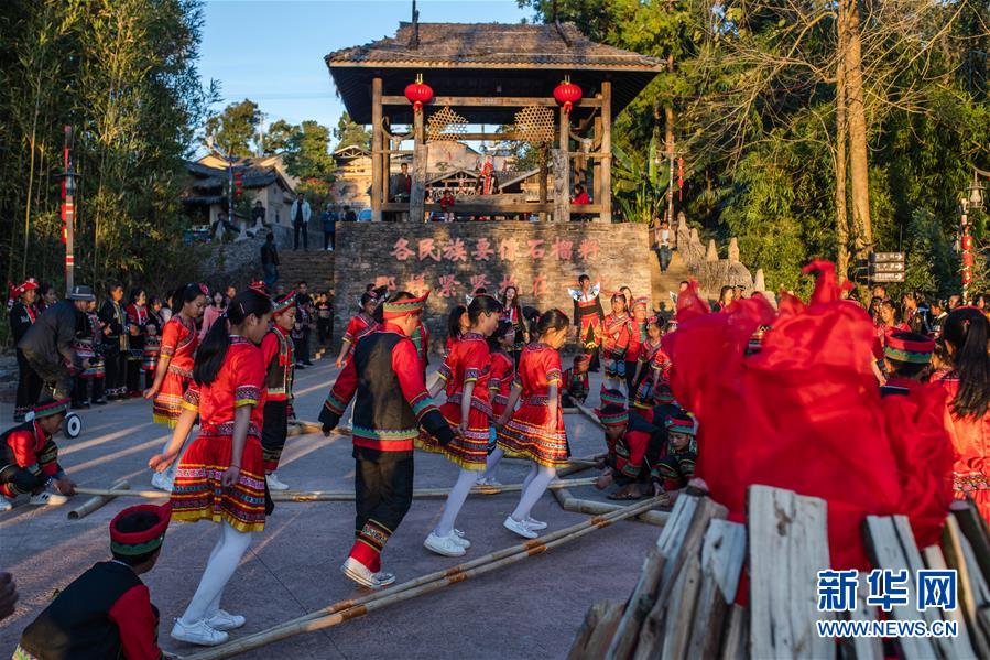 在腾冲市清水乡三家村中寨司莫拉佤族村广场,村民在跳舞(1月19日摄)。新华社记者胡超摄