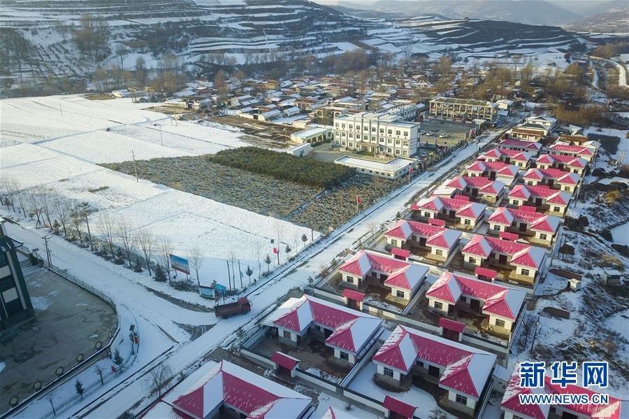 这是2019年12月18日拍摄的甘肃省定西市渭源县元古堆村雪景(无人机照片)。新华社记者范培珅摄